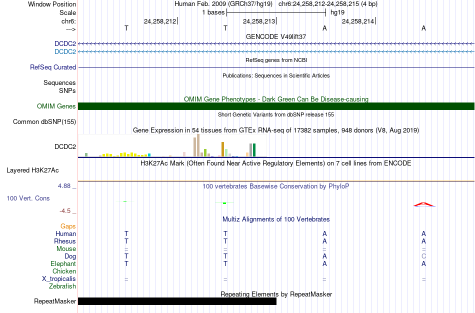 - MYB[chr6:24258212-24258215]