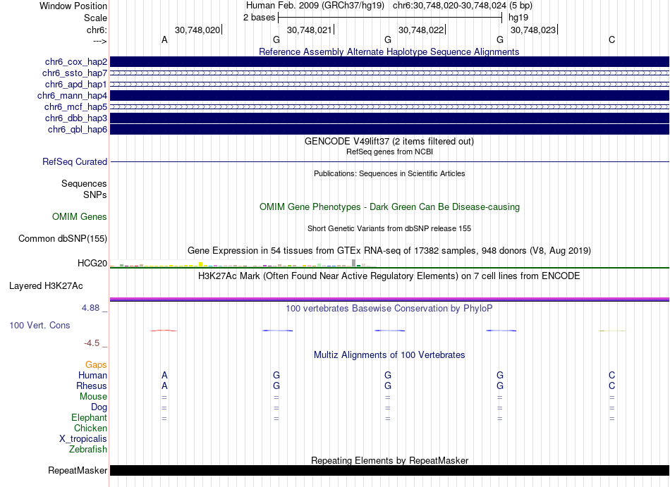 - LFA1[chr6:30748020-30748024]