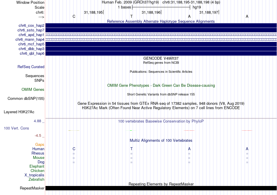 - MYB[chr6:31188195-31188198]