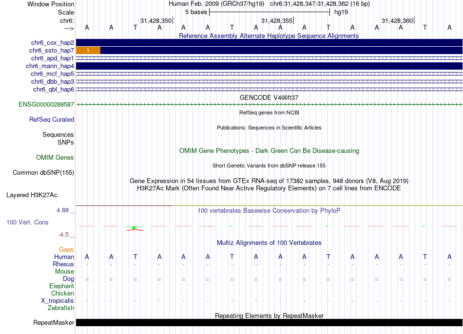 - FOXA1[chr6:31428347-31428362]