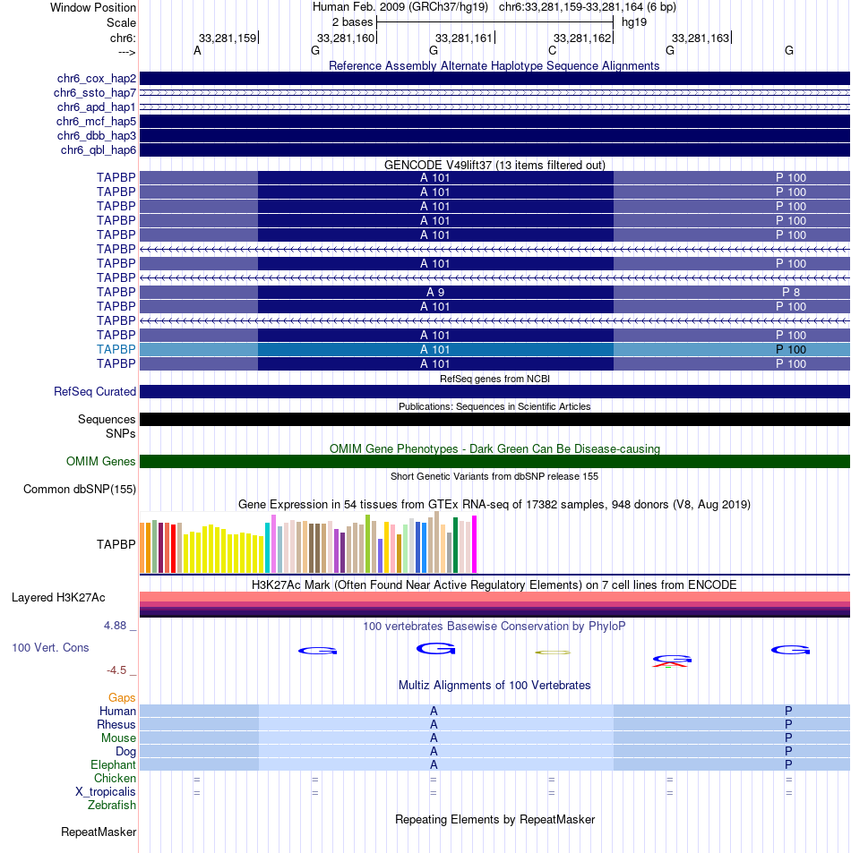 - SP1[chr6:33281159-33281164]