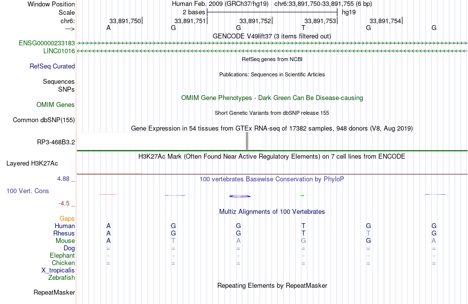 - SP1[chr6:33891750-33891755]