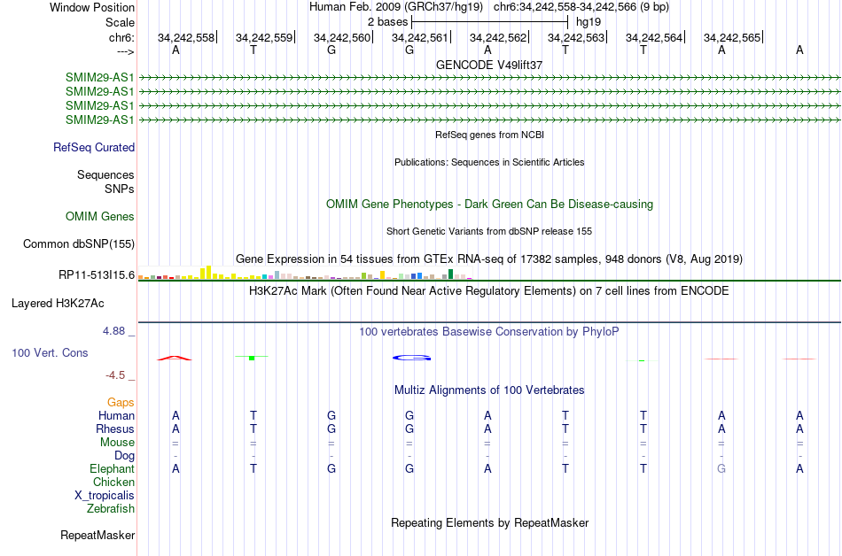 - RHOXF1[chr6:34242558-34242566]