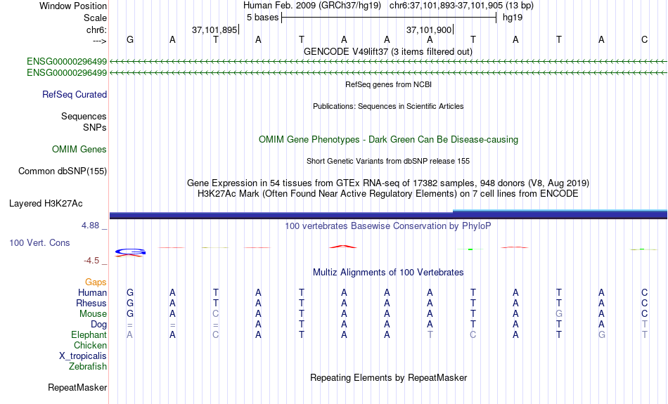 - FOXI1[chr6:37101893-37101905]