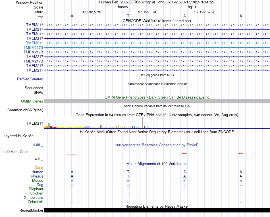 - MYB[chr6:37192573-37192576]