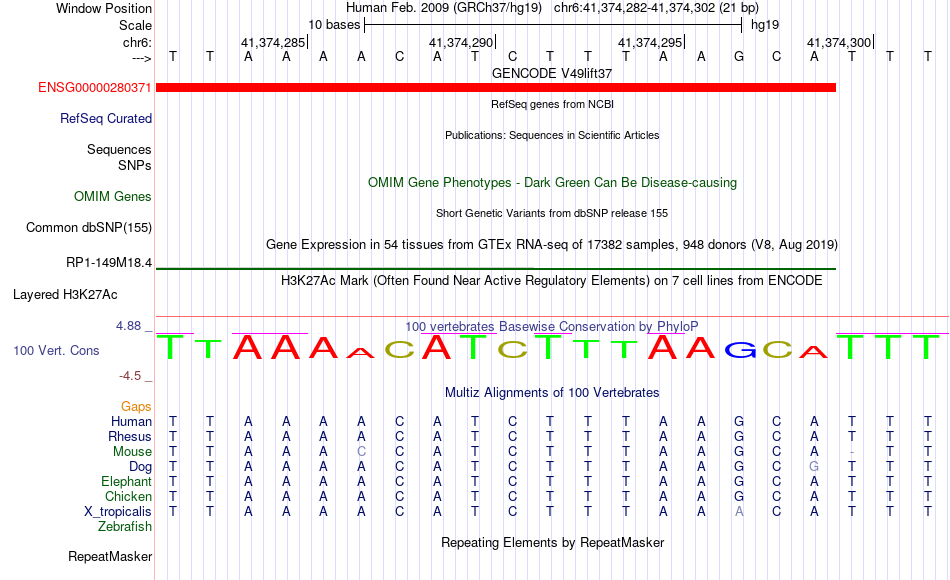 - TP53[chr6:41374282-41374302]