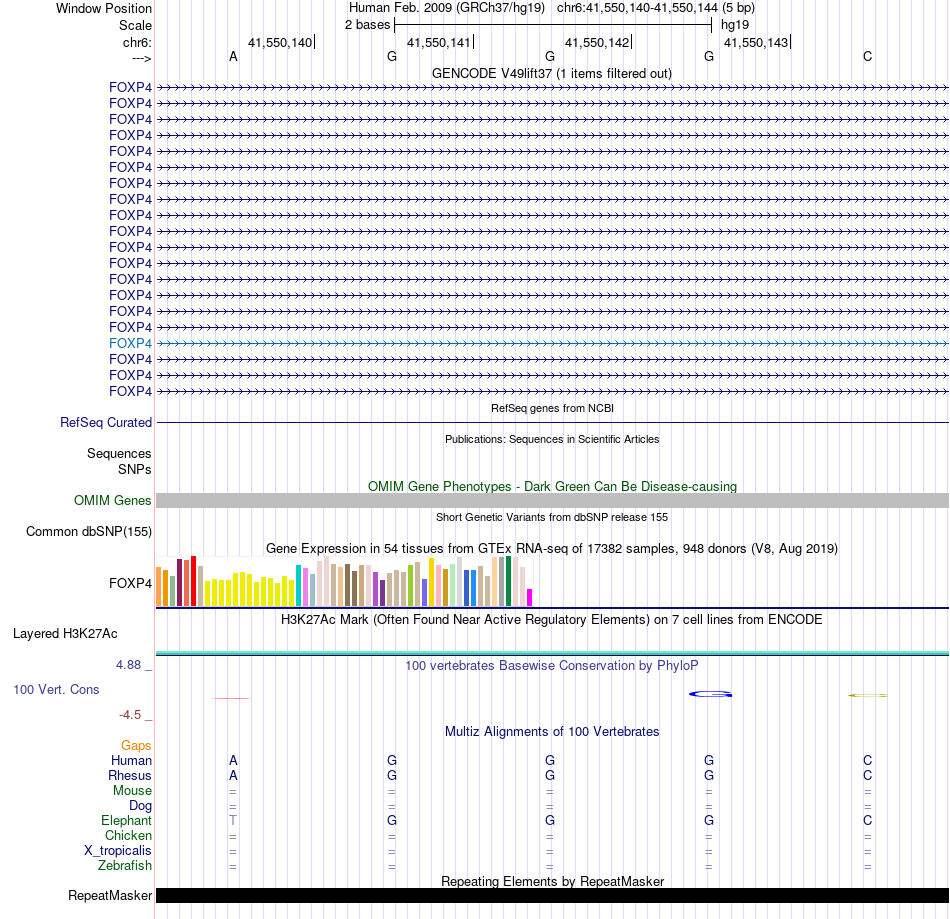 - LFA1[chr6:41550140-41550144]