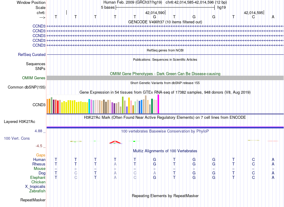 - RUNX1[chr6:42014585-42014596]