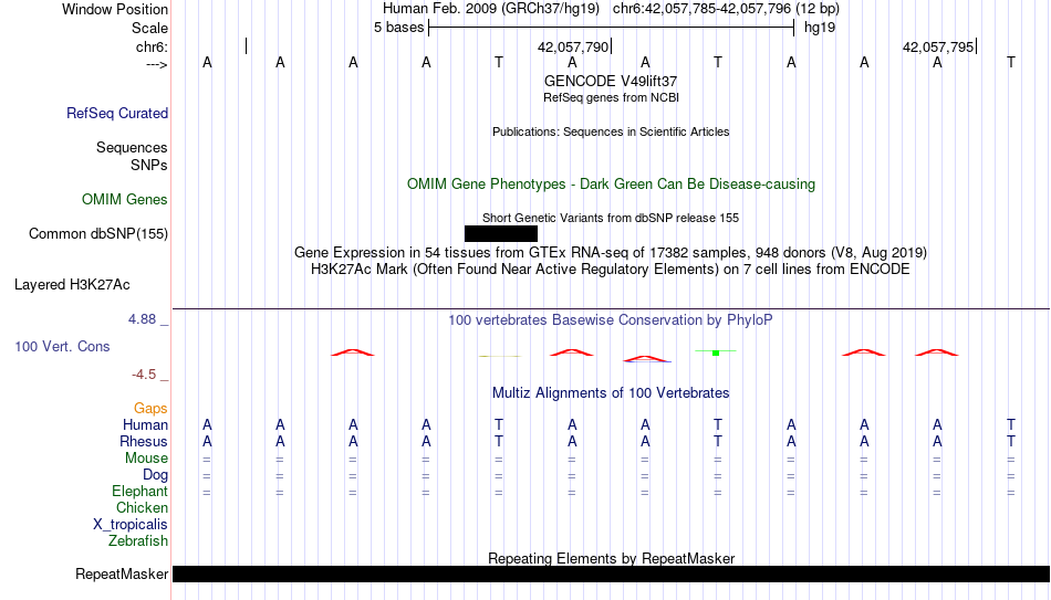 - CDX2[chr6:42057785-42057796]