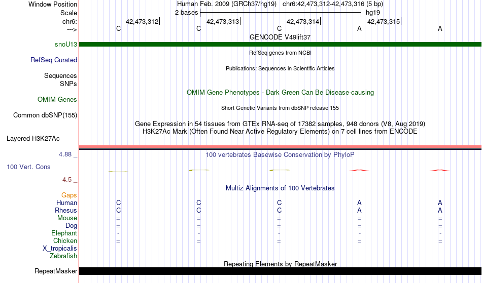 - SRF[chr6:42473312-42473316]