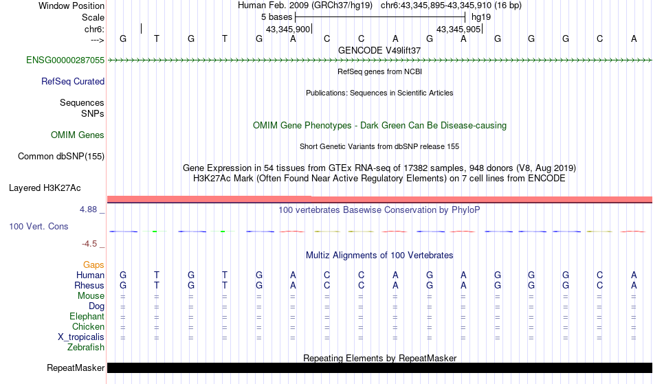 - HNF4G[chr6:43345895-43345910]
