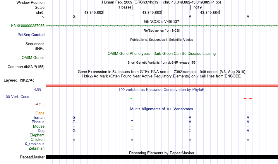 - MYB[chr6:43349882-43349885]