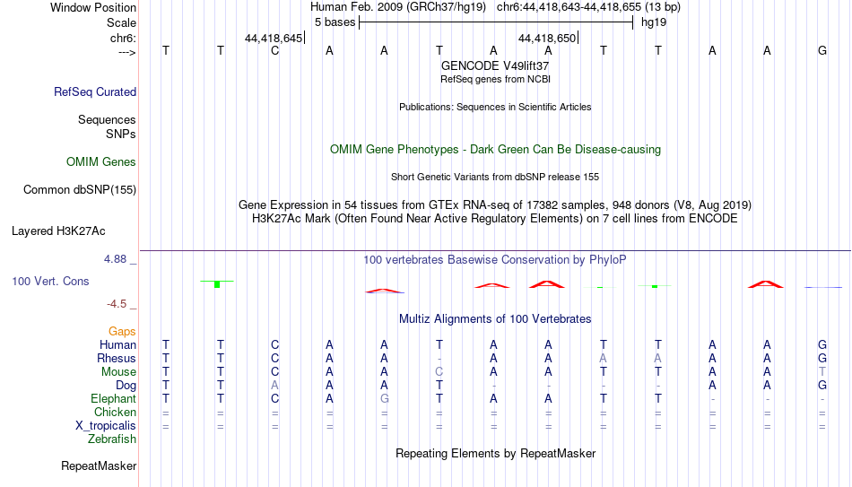 - HNF1B[chr6:44418643-44418655]