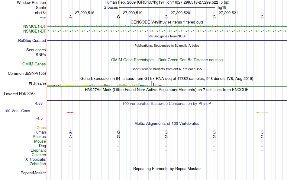 - LFA1[chr16:27299518-27299522]