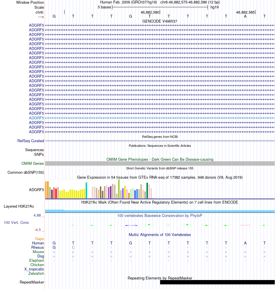 - FOXP2[chr6:46882575-46882586]