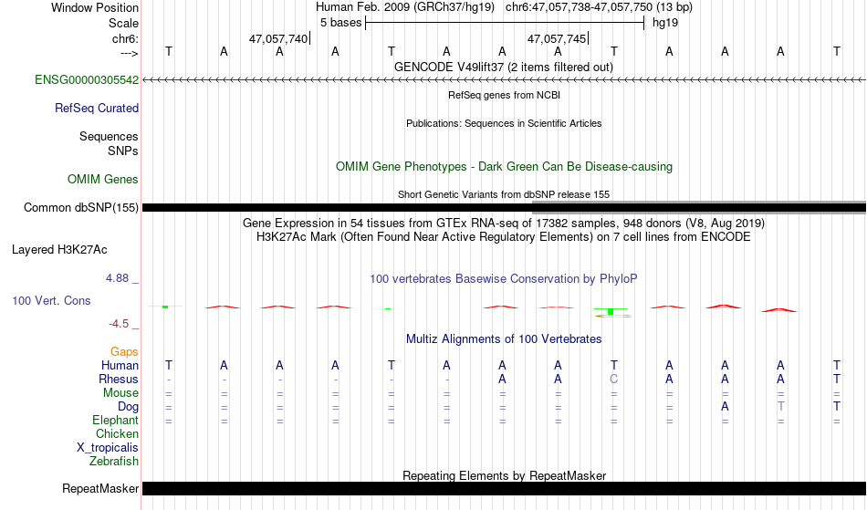 - FOXI1[chr6:47057738-47057750]