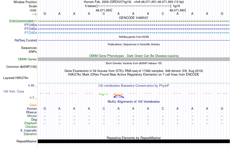 - FOXI1[chr6:48071651-48071663]