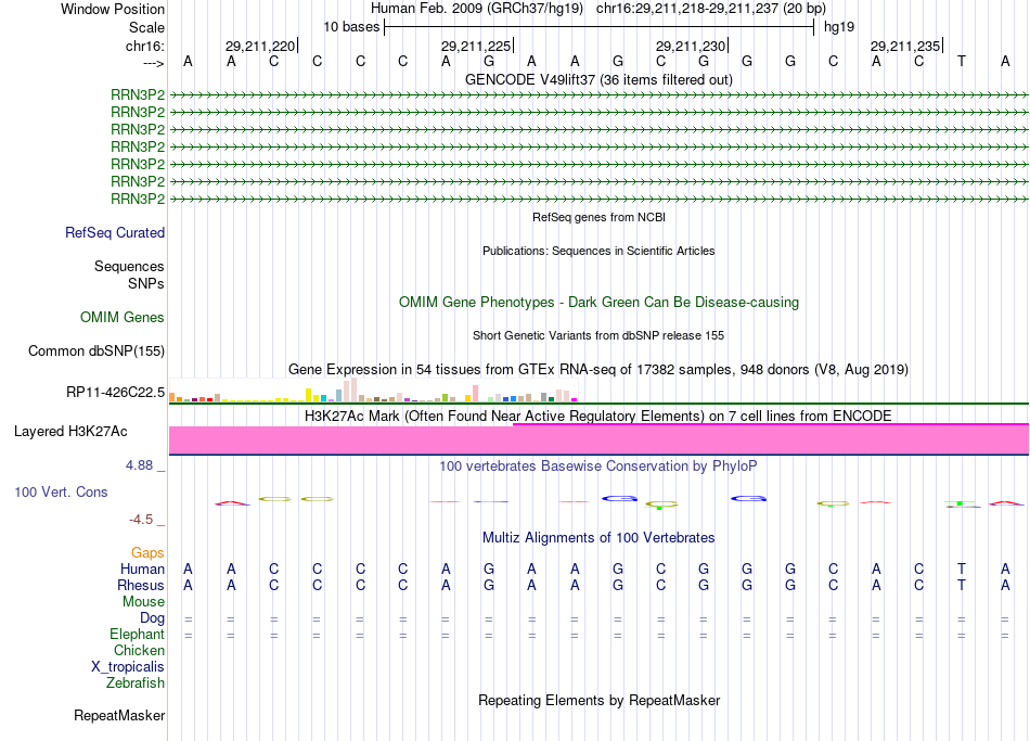 - CTCF[chr16:29211218-29211237]