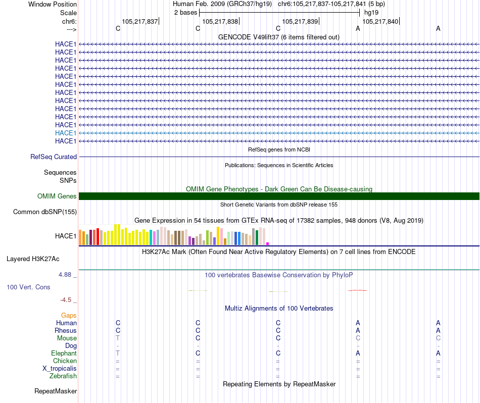 - SRF[chr6:105217837-105217841]