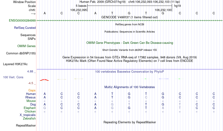 - MAX[chr6:106232093-106232103]