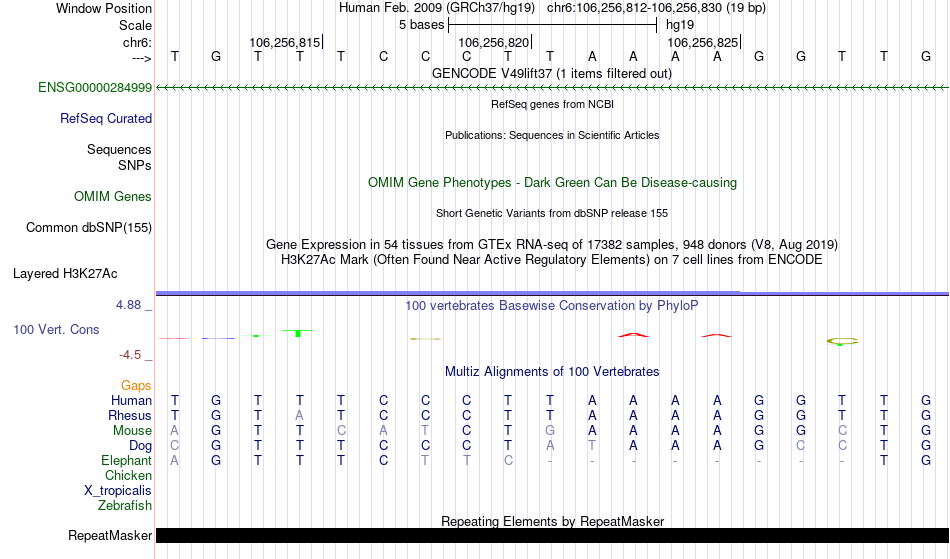 - SRF[chr6:106256812-106256830]