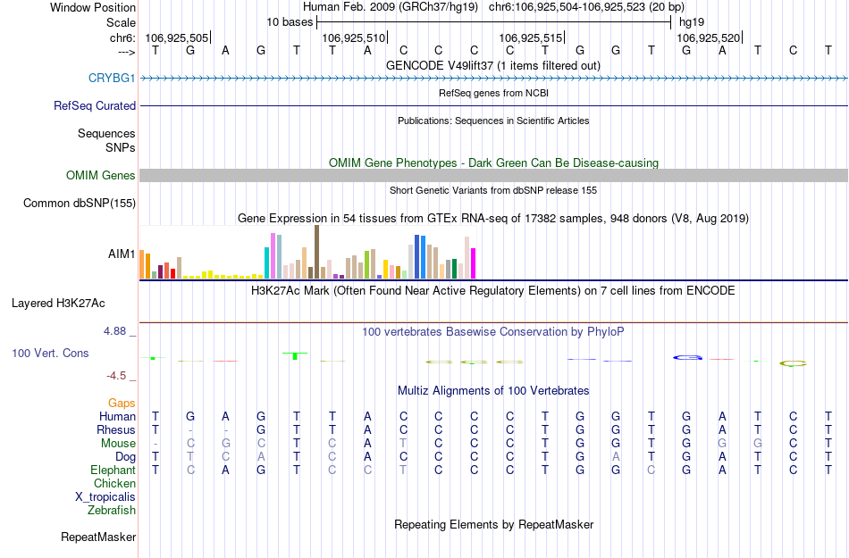 - CTCF[chr6:106925504-106925523]