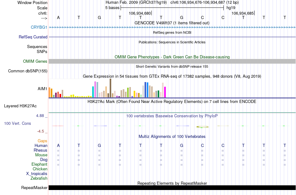 - FOXA1[chr6:106934676-106934687]