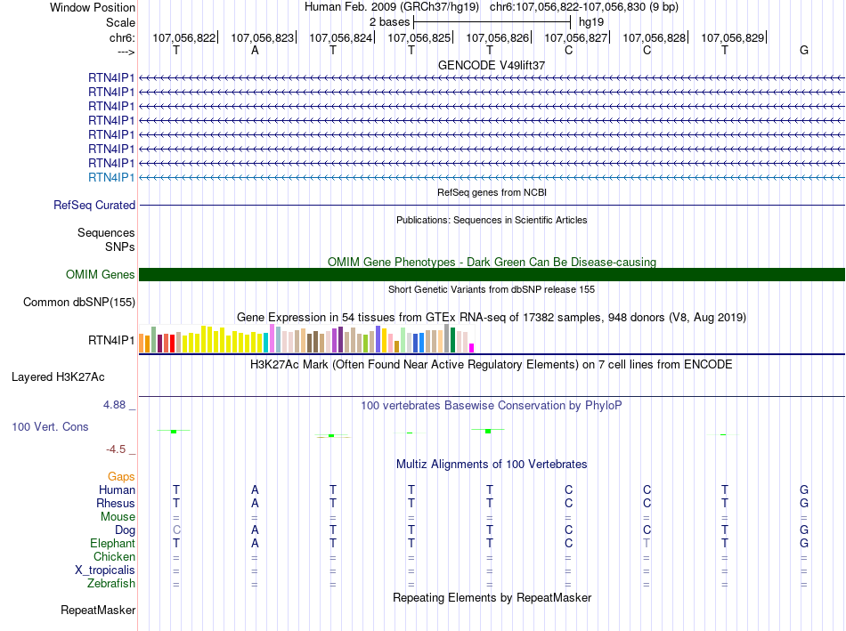 - FEV[chr6:107056822-107056830]