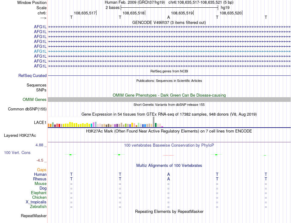 - YY1[chr6:108635517-108635521]