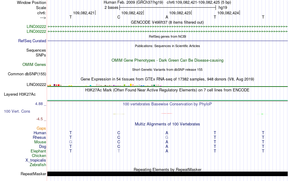 - YY1[chr6:109082421-109082425]