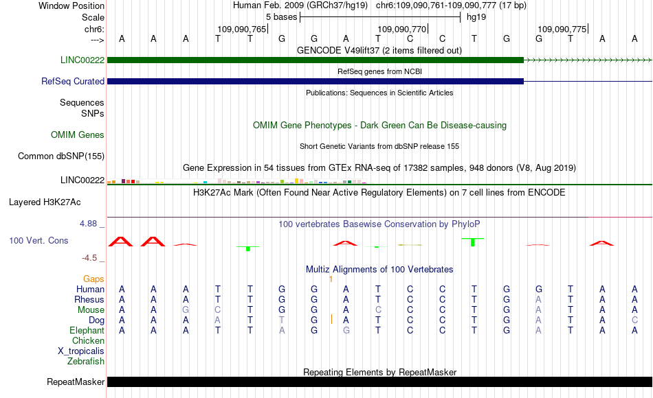 - ZNF143[chr6:109090761-109090777]