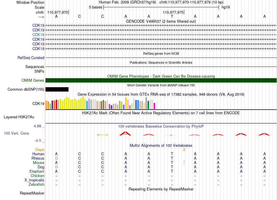 - CDX1[chr6:110977970-110977979]
