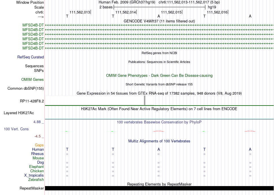 - TEAD2[chr6:111562013-111562017]