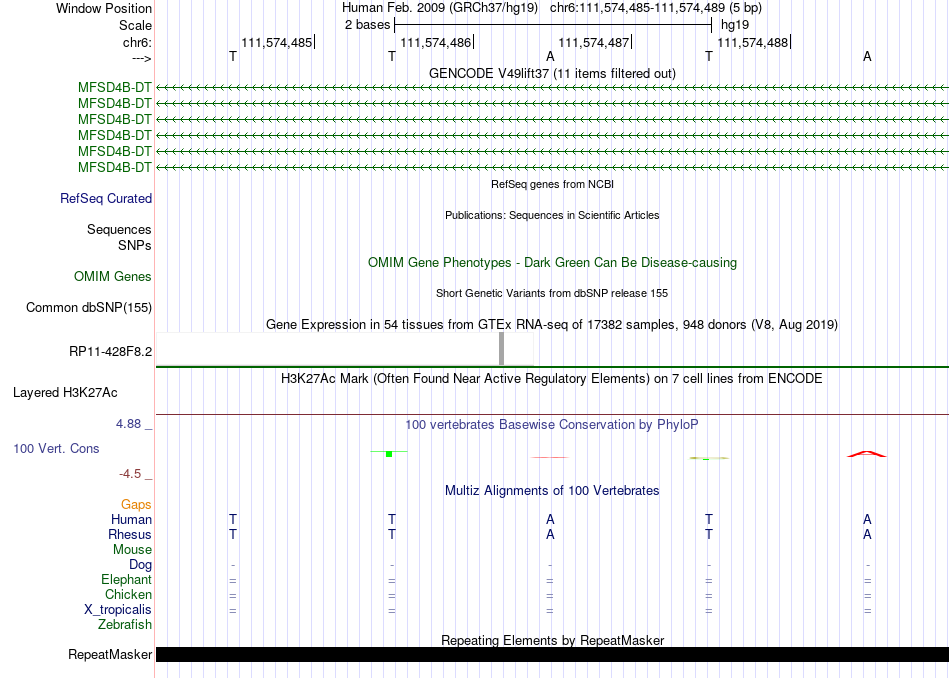 - TEAD2[chr6:111574485-111574489]