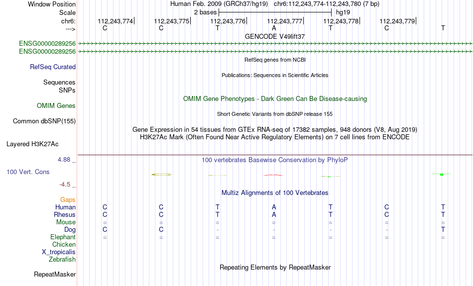 - GATA3[chr6:112243774-112243780]