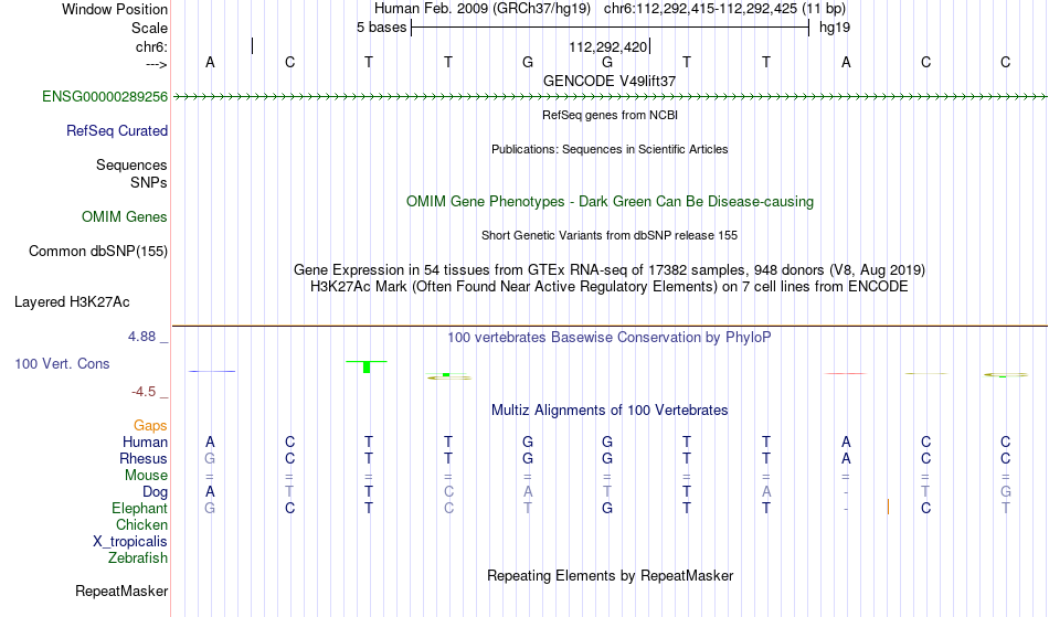 - HMBOX1[chr6:112292415-112292425]