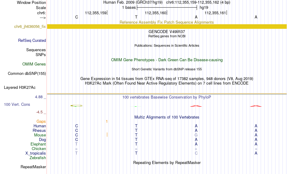 - MYB[chr6:112355159-112355162]