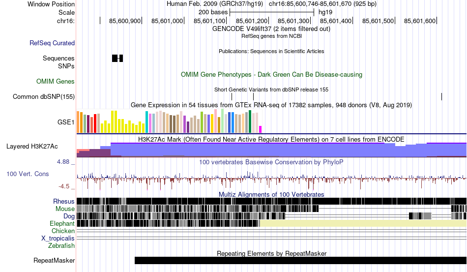 | chr16 | 85601000 | 85601159 | vista23326 |