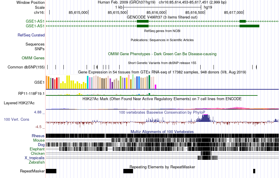 | chr16 | 85617282 | 85617663 | vista23332 |