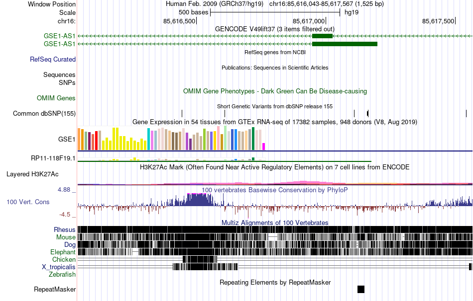 | chr16 | 85617282 | 85617663 | vista23332 |