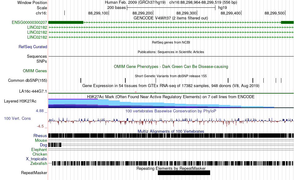 | chr16 | 88299166 | 88299470 | vista23485 |