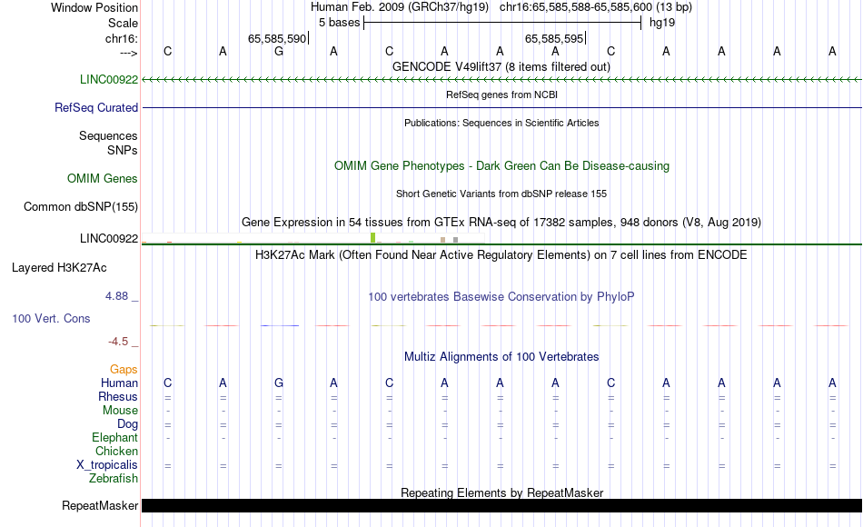 - FOXI1[chr16:65585588-65585600]