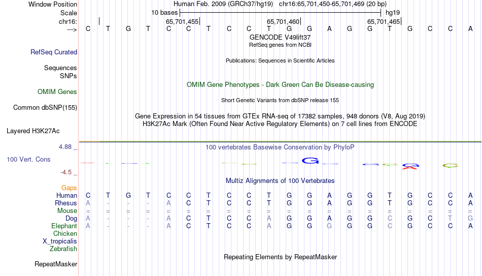- CTCF[chr16:65701450-65701469]