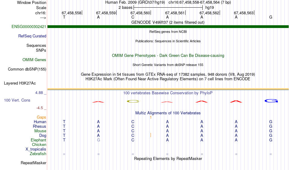 - SOX10[chr16:67458558-67458564]