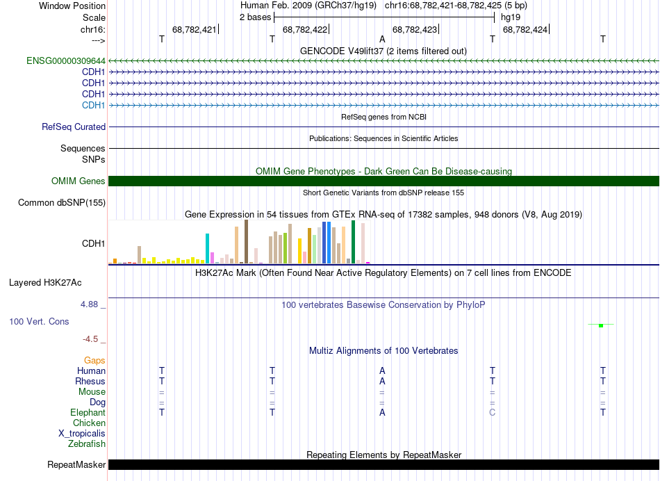 - YY1[chr16:68782421-68782425]