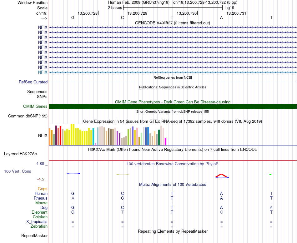 - NFE[chr19:13200728-13200732]