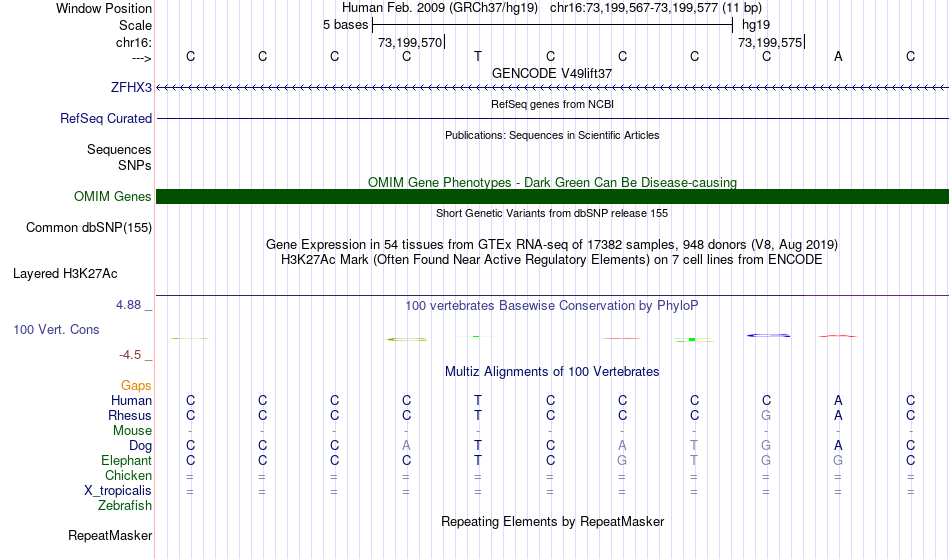 - ZNF740[chr16:73199567-73199577]