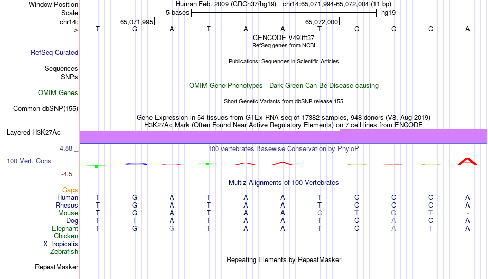 - GSC[chr14:65071994-65072004]