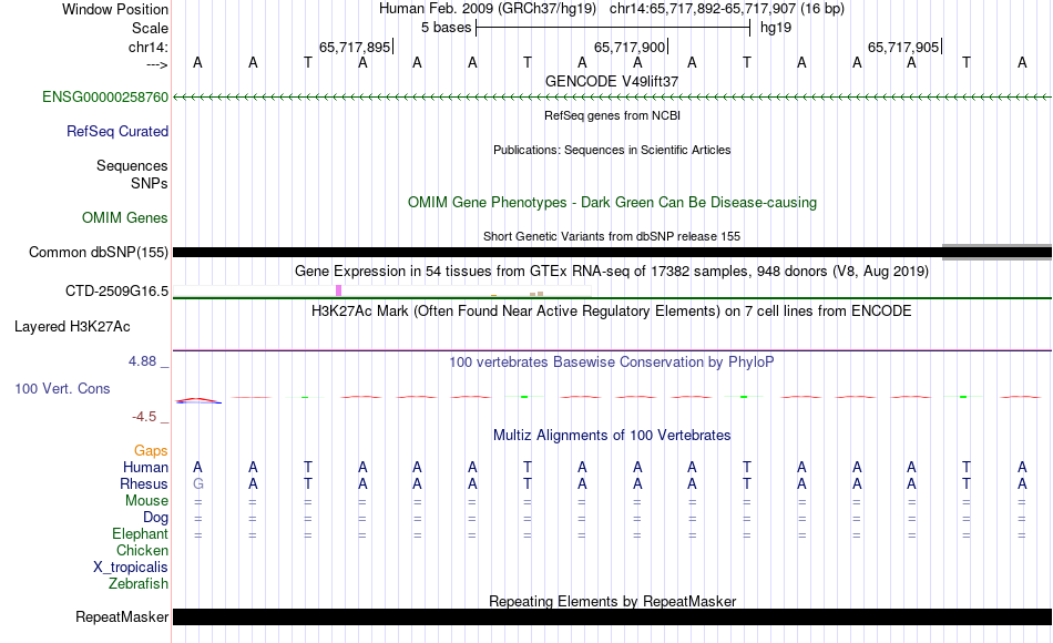 - FOXA1[chr14:65717892-65717907]