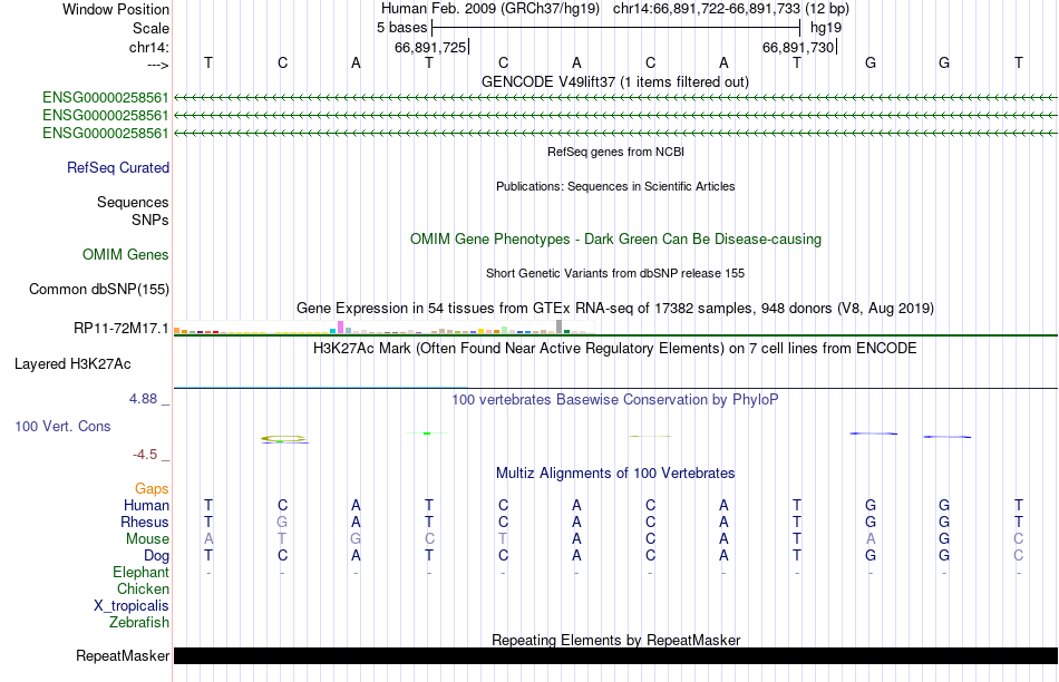 - USF1[chr14:66891722-66891733]